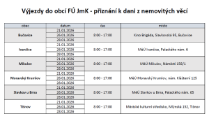 Finanční úřad pro Jihomoravský kraj zveřejňuje telefonní čísla, na kterých Vám nabízí informace a pomoc s vyplněním daňových přiznání k dani z nemovitých věcí tak, abyste šetřili čas a nemuseli cestovat na finanční úřad a jeho územní pracoviště.