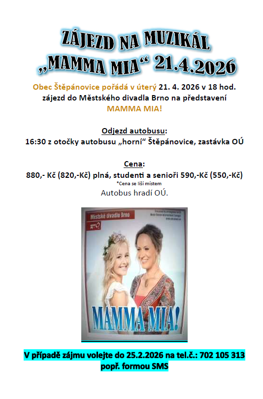 Odjezd autobusu: 16:30 z otočky autobusu „horní“ Štěpánovice, zastávka OÚ